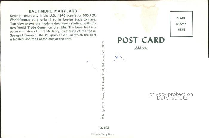 72286412 Baltimore Maryland postalisch nicht gelaufen Erhaltung siehe scans KatCode: 14140220000000