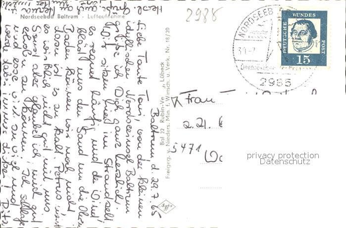 41586693 Baltrum Nordseebad Fliegeraufnahme postalisch gelaufen Erhaltung siehe scans Alte Ansichtskarte Postkarte alte Postkarte hz_F Katcode 11110003452002