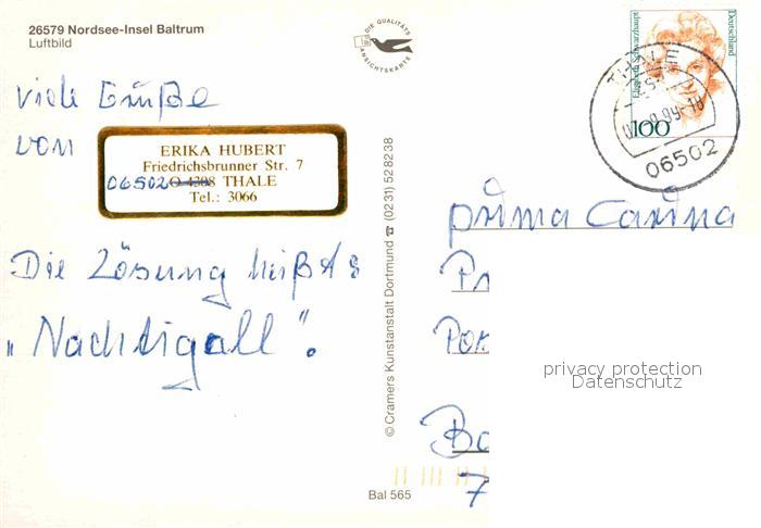 72713046 alte Postkarte Baltrum Nordseebad Fliegeraufnahme postalisch gelaufen Erhaltung siehe scans [LiesaD40] KatCode: 11110003452002