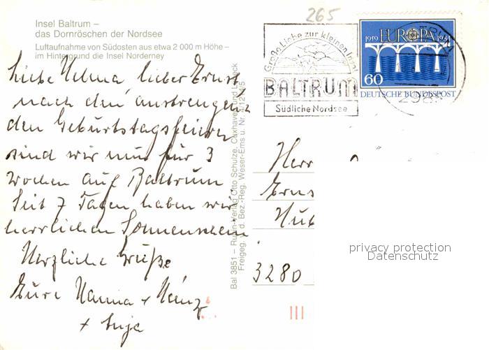 72670215 alte Postkarte Baltrum Nordseebad Fliegeraufnahme Insel Dornroeschen der Nordsee postalisch gelaufen Erhaltung siehe scans [LiesaD40] KatCode: 11110003452002