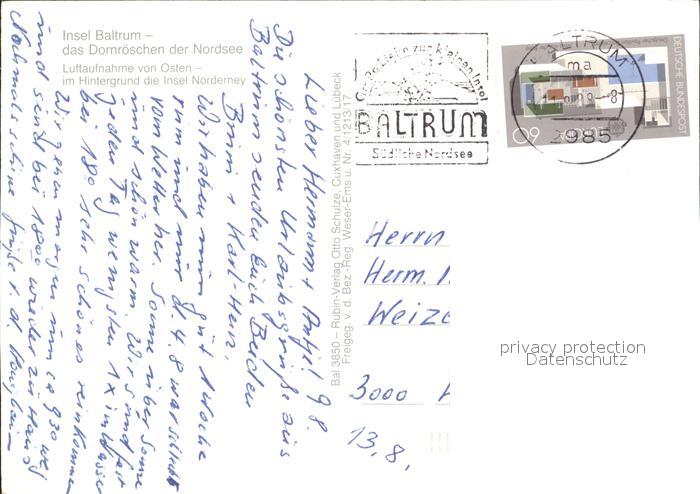 72289534 alte Postkarte Baltrum Nordseebad Fliegeraufnahme Insel Norderney postalisch gelaufen Erhaltung siehe scans KatCode: 11110003452002