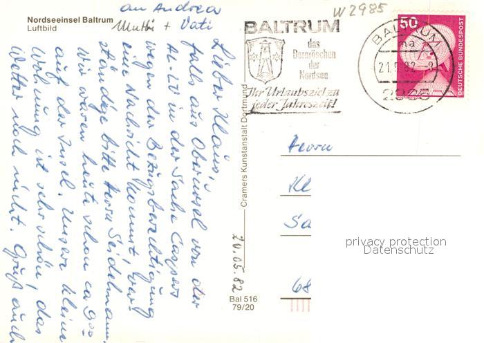 73124204 alte Postkarte Baltrum Nordseebad Fliegeraufnahme Insel postalisch gelaufen Erhaltung siehe scans [LiesaD40] KatCode: 11110003452002