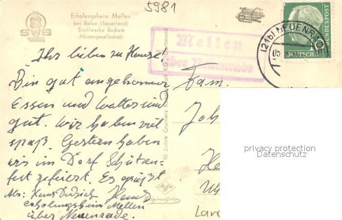 73701862 alte Postkarte Balve Erholungsheim Mellen postalisch gelaufen Erhaltung siehe scans [LiesaD40] KatCode: 11110005962008
