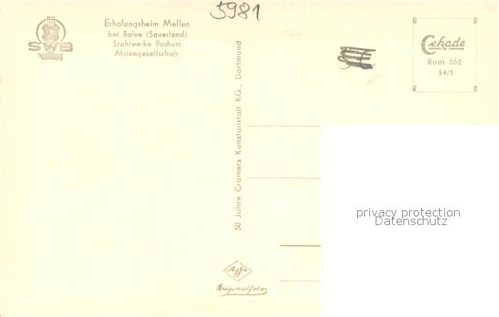 73701863 Balve Erholungsheim Mellen Aussenansicht postalisch nicht gelaufen Erhaltung siehe scans [LiesaD40] KatCode: 11110005962008