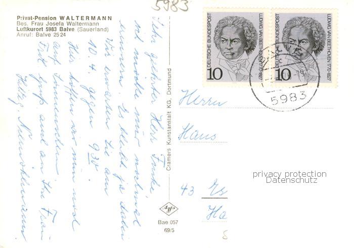 73854513 alte Postkarte Balve Pension Waltermann Gastraeume Zimmer postalisch gelaufen Erhaltung siehe scans [WerneD78] KatCode: 11110005962008
