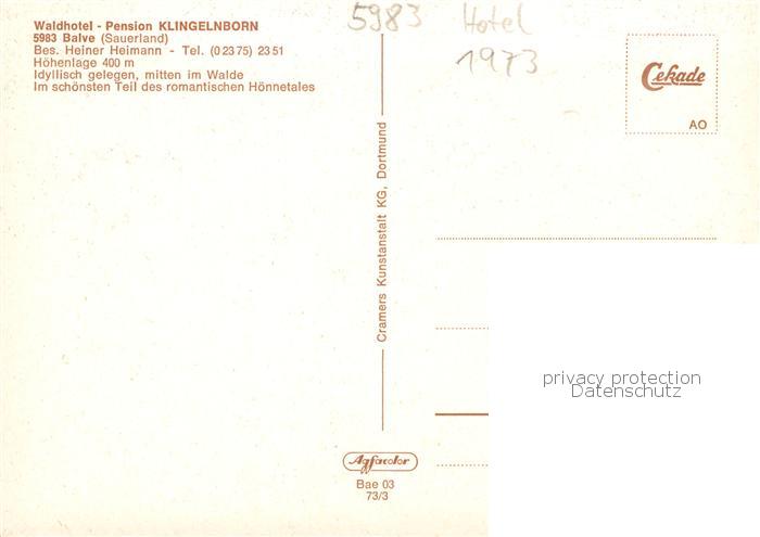 73864184 Balve Waldhotel Pension Klingelnborn Gastraeume Panorama postalisch nicht gelaufen Erhaltung siehe scans [WerneD78] KatCode: 11110005962008