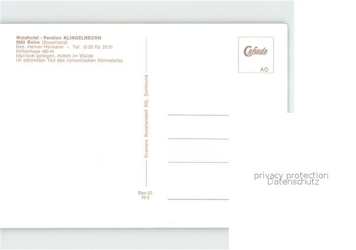 72198235 Balve Waldhotel Pension Klingelnborn Restaurant Gesamtansicht postalisch nicht gelaufen Erhaltung siehe scans KatCode: 11110005962008