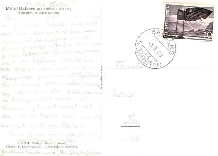 73878176 alte Postkarte Balzers Liechtenstein FL Panorama mit Schloss Gutenberg postalisch gelaufen Erhaltung siehe scans [FriedD77] KatCode: 11280010000000