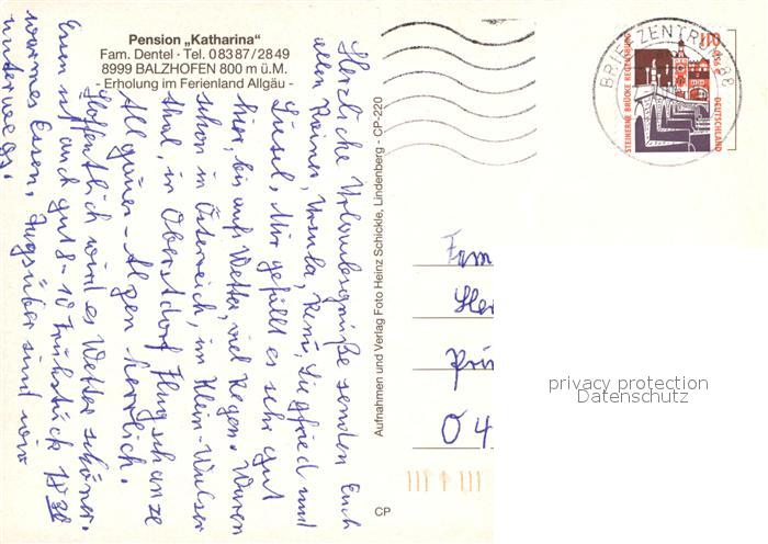 73033417 alte Postkarte Balzhofen Pension Katharina postalisch gelaufen Erhaltung siehe scans [PaolaD17] KatCode: 11110008216007