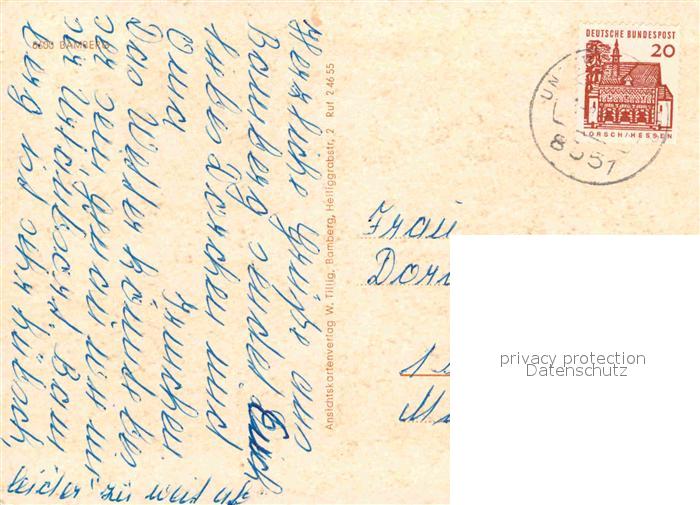 72670145 alte Postkarte Bamberg postalisch gelaufen Erhaltung siehe scans [LiesaD40] KatCode: 11110009461000