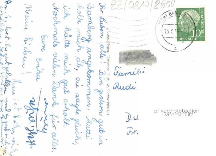 72761943 alte Postkarte Bamberg Altenburg Dom Michelsberg Klein-Venedig postalisch gelaufen Erhaltung siehe scans [LiesaD40] KatCode: 11110009461000