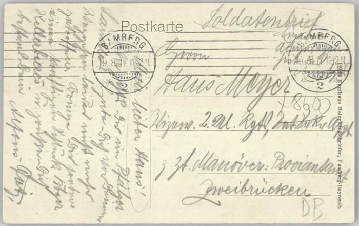 40237330 Bamberg Altenburg Feldpost x 1911 KatCode 11110009461000