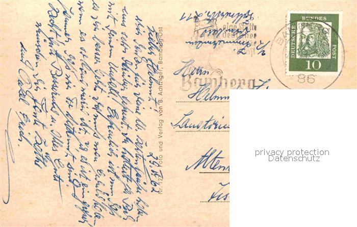 72632188 alte Postkarte Bamberg Altenburg Reiter im Dom Michaelsberg Klein Venedig Altes Rathaus postalisch gelaufen Erhaltung siehe scans [FriedD77] KatCode: 11110009461000