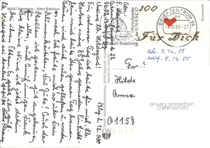 72375290 alte Postkarte Bamberg Altes Rathaus postalisch gelaufen Erhaltung siehe scans KatCode: 11110009461000