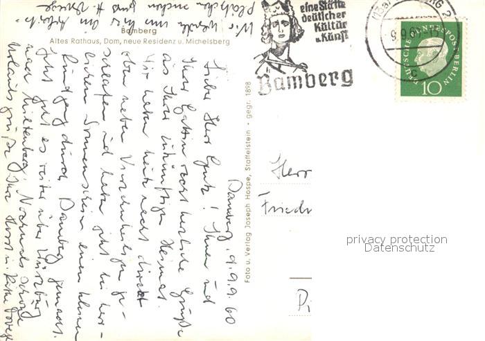 73333218 alte Postkarte Bamberg Altes Rathaus Dom Neue Residenz Michelsberg postalisch gelaufen Erhaltung siehe scans [WerneD78] KatCode: 11110009461000