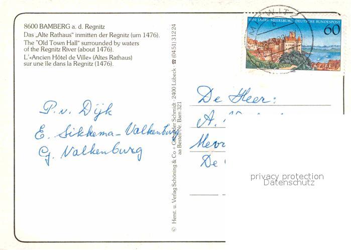72875657 alte Postkarte Bamberg Altes Rathaus Regnitz Bruecke postalisch gelaufen Erhaltung siehe scans [FriedD77] KatCode: 11110009461000