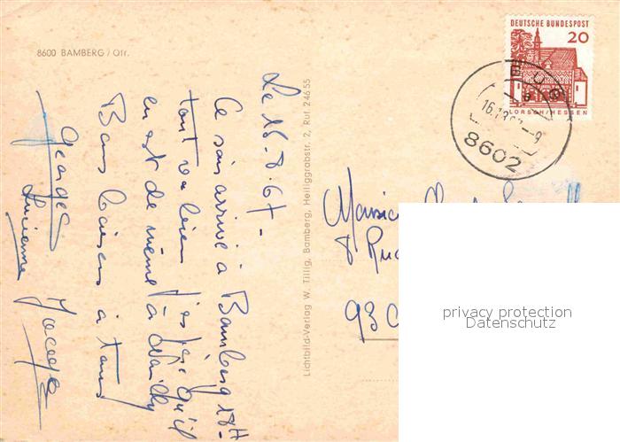 72725497 alte Postkarte Bamberg Altes Rathaus Regnitz mit Michelsberg Dom Alte Hofhaltung postalisch gelaufen Erhaltung siehe scans [FriedD77] KatCode: 11110009461000