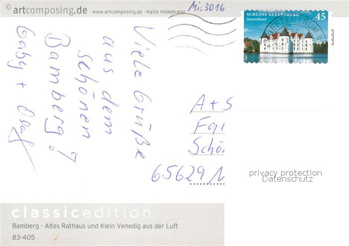 73724914 alte Postkarte Bamberg Altes Rathaus und Klein Venedig Fliegeraufnahme postalisch gelaufen Erhaltung siehe scans [WerneD78] KatCode: 11110009461000