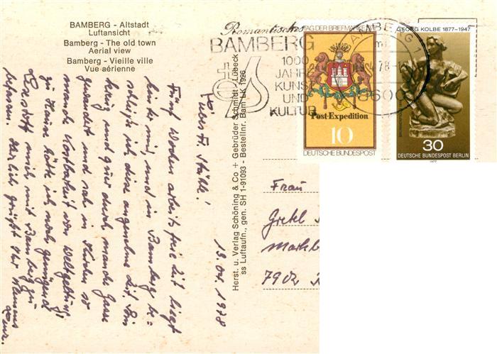 73879050 alte Postkarte Bamberg Altstadt Fliegeraufnahme postalisch gelaufen Erhaltung siehe scans [WerneD78] KatCode: 11110009461000