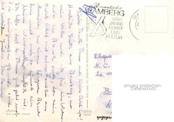 72785957 alte Postkarte Bamberg Altstadtblick mit Dom postalisch gelaufen Erhaltung siehe scans [WerneD78] KatCode: 11110009461000