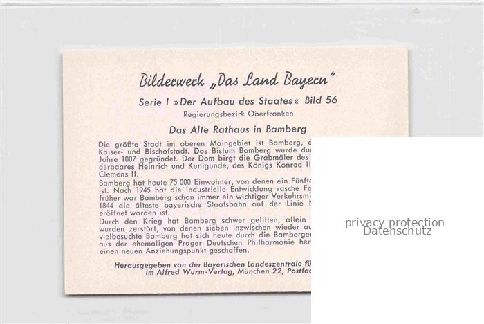 BAMBERG Bayern Das Alte Rathaus postalisch nicht gelaufen Werbekarte (keine Postkarte) Erhaltung siehe scans [WerneD78] Werbekarte (keine Postkarte) Wern Katcode 11110009461000