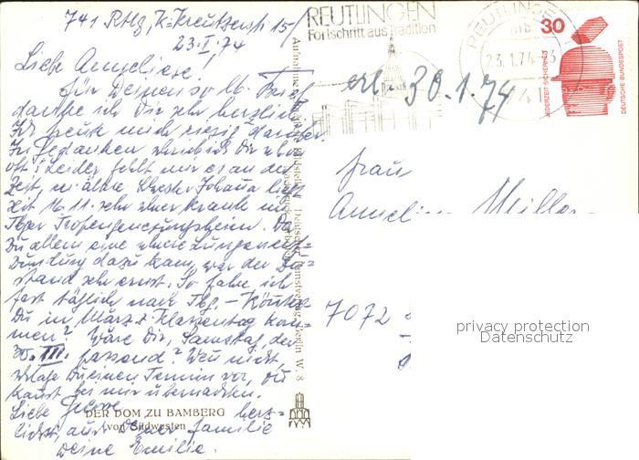 72182269 alte Postkarte Bamberg Dom postalisch gelaufen Erhaltung siehe scans KatCode: 11110009461000