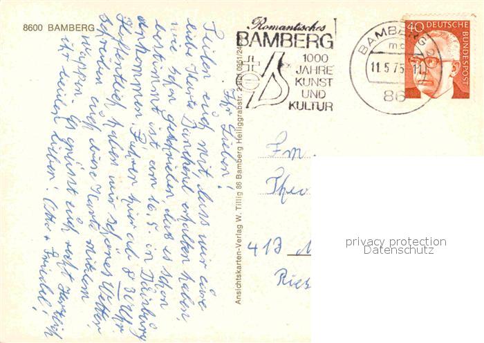 72845065 alte Postkarte Bamberg Dom Altes Rathaus Fachwerkhaus Michelsberg Klein Venedig Kanal Geyerswoerth Bruecke postalisch gelaufen Erhaltung siehe scans [FriedD77] KatCode: 11110009461000