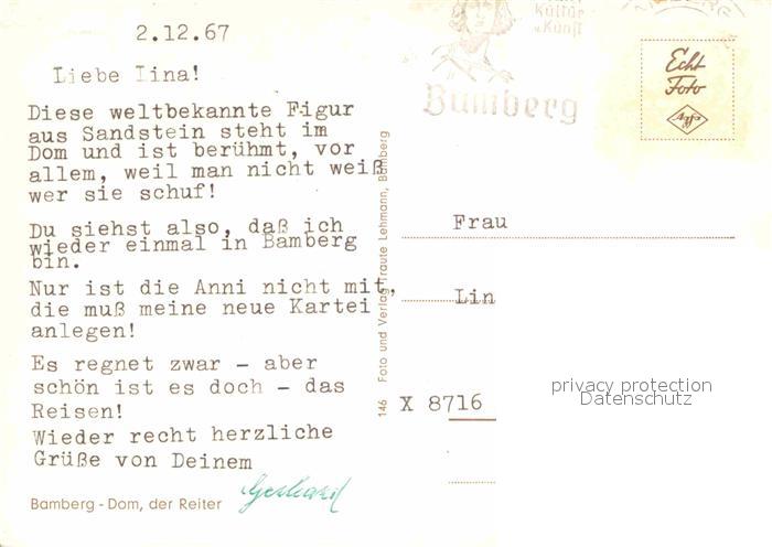 72771188 alte Postkarte Bamberg Dom Bamberger Reiter postalisch gelaufen Erhaltung siehe scans [WerneD78] KatCode: 11110009461000
