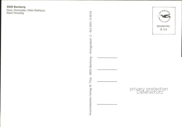 72376075 Bamberg Dom Reiter Altes Rathaus Klein Venedig postalisch nicht gelaufen Erhaltung siehe scans KatCode: 11110009461000