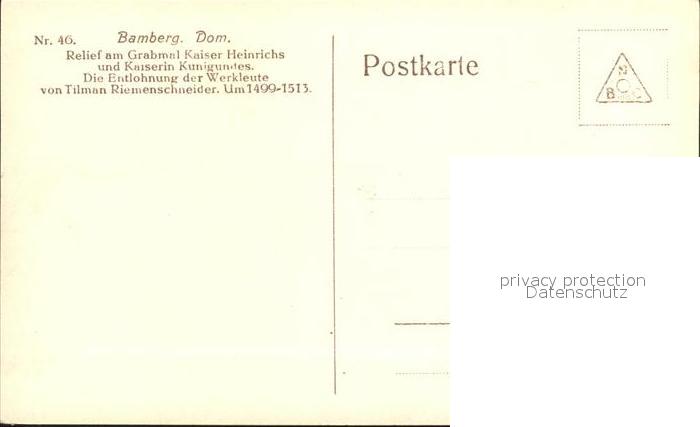 71832515 Bamberg Dom Relief Grabmal Kaiser Heinrich Kaiserin Kunigundes Entlohnung postalisch nicht gelaufen Erhaltung siehe scans KatCode: 11110009461000