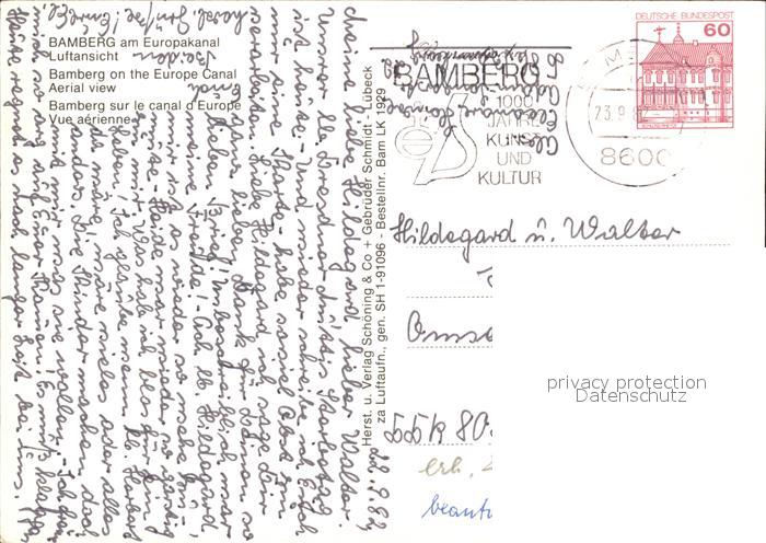 72376089 alte Postkarte Bamberg Europakanal Luftbild postalisch gelaufen Erhaltung siehe scans KatCode: 11110009461000