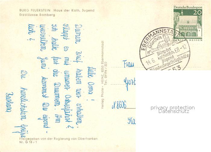 73025544 alte Postkarte Bamberg Fliegeraufnahme Burg Feuerstein postalisch gelaufen Erhaltung siehe scans [KathaD81] KatCode: 11110009461000