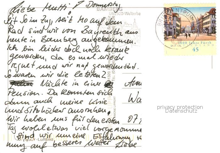 73176097 alte Postkarte Bamberg Fliegeraufnahme Schloss Seehof postalisch gelaufen Erhaltung siehe scans [NatalD47] KatCode: 11110009461000