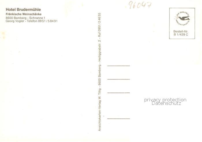 73863522 Bamberg Hotel Brudermuehle Fraenkische Weinschaenke postalisch nicht gelaufen Erhaltung siehe scans [WerneD78] KatCode: 11110009461000