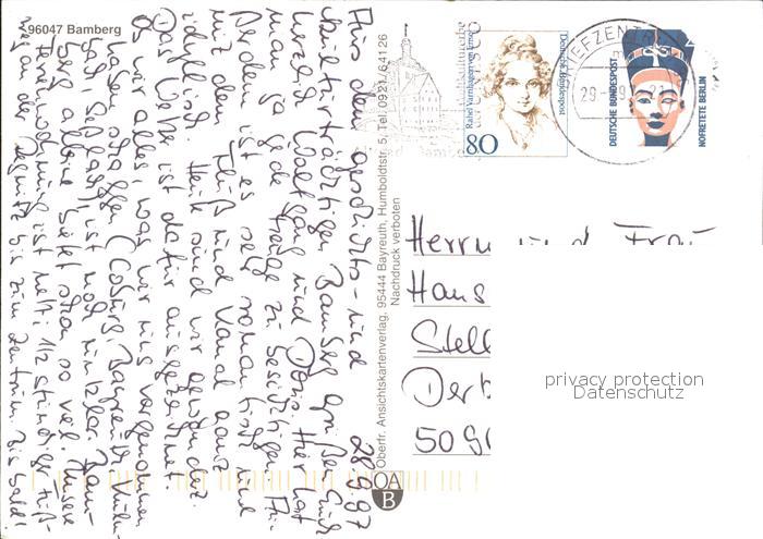 72364925 alte Postkarte Bamberg Kaiserdom Kloster Michelsberg Klein-Venedig Concordia postalisch gelaufen Erhaltung siehe scans KatCode: 11110009461000