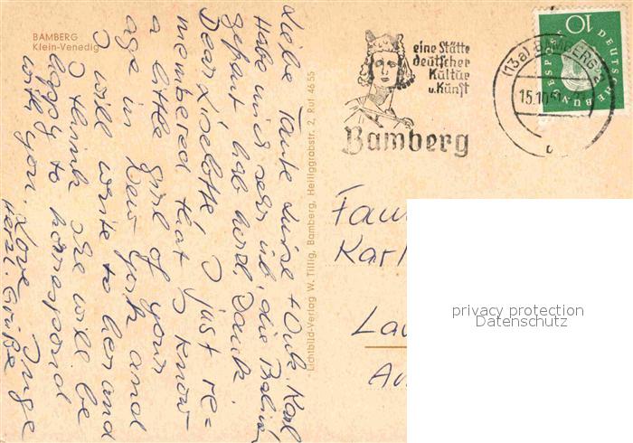 72812642 alte Postkarte Bamberg Klein Venedig postalisch gelaufen Erhaltung siehe scans [WerneD78] KatCode: 11110009461000