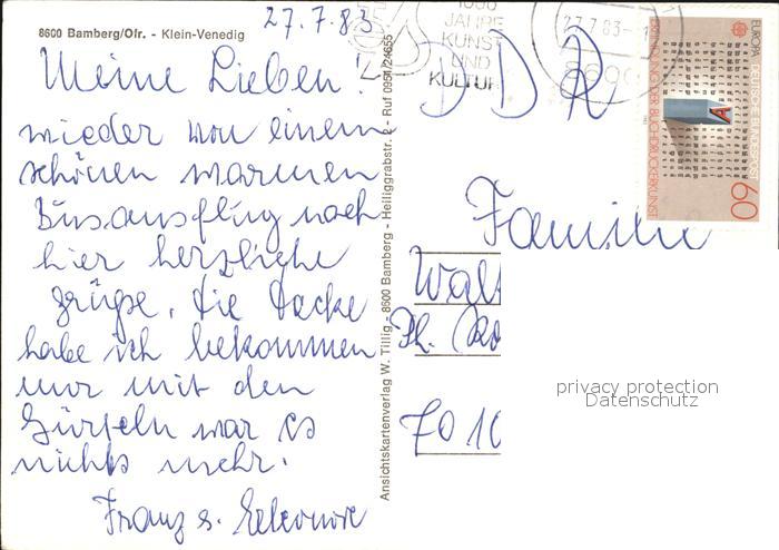 72527670 alte Postkarte Bamberg Klein Venedig Schwaene an der Regnitz postalisch gelaufen Erhaltung siehe scans KatCode: 11110009461000
