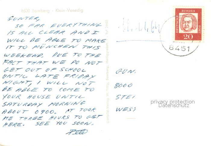 73780149 alte Postkarte Bamberg Klein-Venedig postalisch gelaufen Erhaltung siehe scans [FriedD77] KatCode: 11110009461000