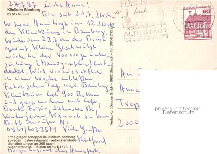 73249027 alte Postkarte Bamberg Klinikum postalisch gelaufen Erhaltung siehe scans [FriedD77] KatCode: 11110009461000