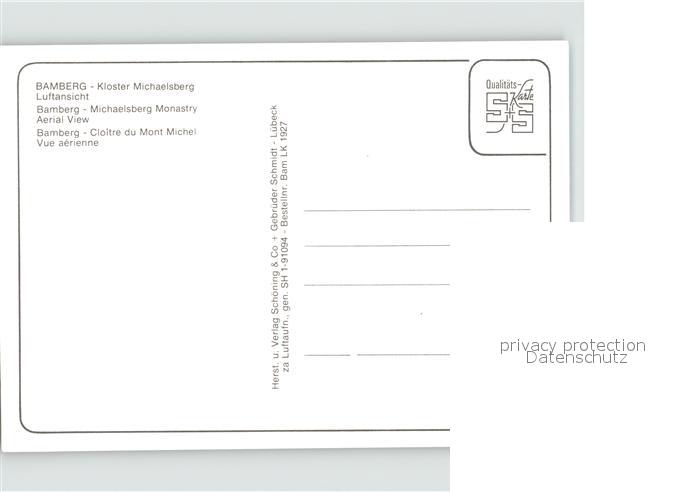 71850527 Bamberg Kloster Michaelsberg Fliegeraufnahme postalisch nicht gelaufen Erhaltung siehe scans KatCode: 11110009461000