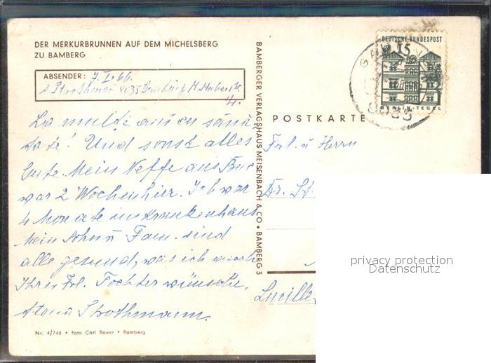 72151229 alte Postkarte Bamberg Merkurbrunnen Michelsberg postalisch gelaufen Erhaltung siehe scans KatCode: 11110009461000