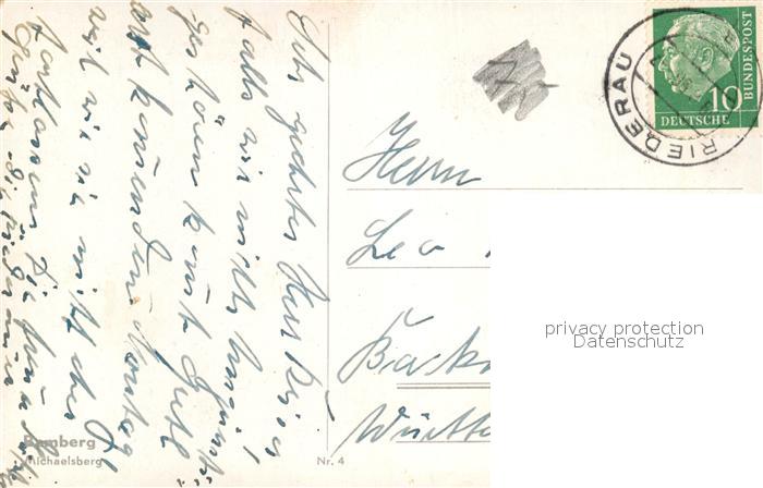 73238635 alte Postkarte Bamberg Michaelsberg postalisch gelaufen Erhaltung siehe scans [NatalD47] KatCode: 11110009461000