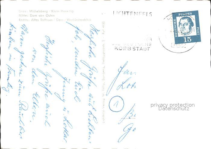 72280429 alte Postkarte Bamberg Michelsberg Klein-Venedig Dom altes Rathaus postalisch gelaufen Erhaltung siehe scans KatCode: 11110009461000