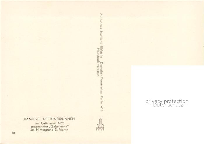 73756342 Bamberg Neptunsbrunnen am Gruenmarkt Gabelmann S. MArtin postalisch nicht gelaufen Erhaltung siehe scans [LiesaD40] KatCode: 11110009461000