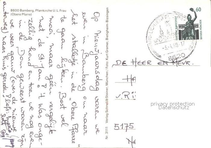 72389870 alte Postkarte Bamberg Pfarrkirche postalisch gelaufen Erhaltung siehe scans KatCode: 11110009461000