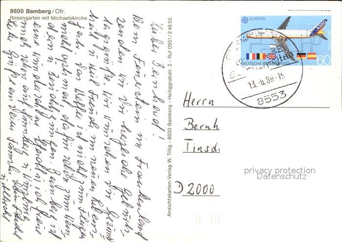 72573464 alte Postkarte Bamberg Rosengarten Michaelskirche postalisch gelaufen Erhaltung siehe scans [KathaD79] KatCode: 11110009461000