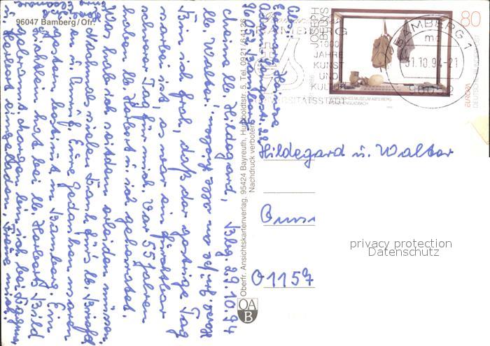 72382024 alte Postkarte Bamberg Stadtansicht postalisch gelaufen Erhaltung siehe scans KatCode: 11110009461000