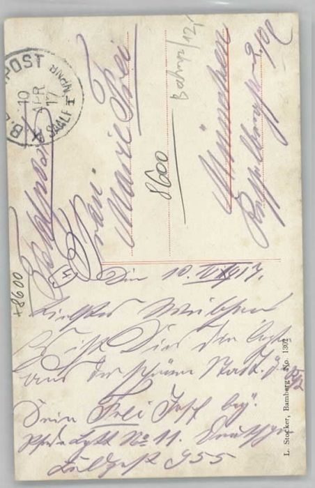 40237096 Bamberg Walkmuehle Feldpost x 1917 KatCode 11110009461000