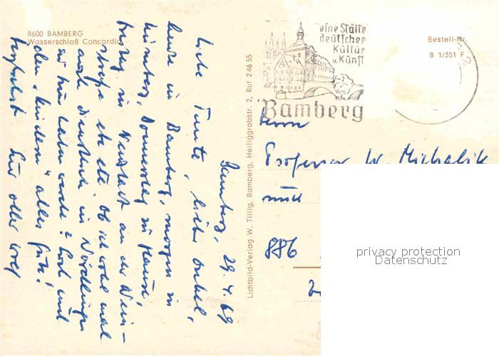 72751873 alte Postkarte Bamberg Wasserschloss Concordia postalisch gelaufen Erhaltung siehe scans [KathaD81] KatCode: 11110009461000