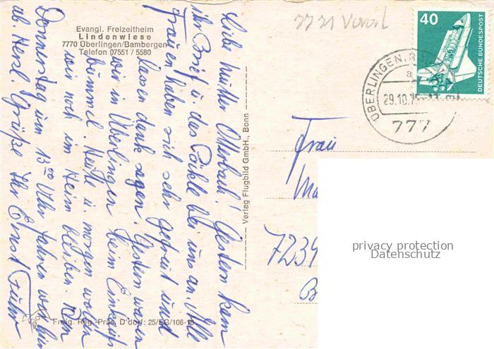 74104137 alte Postkarte Bambergen ueberlingen BW Evangelisches Freizeitheim Lindenwiese postalisch gelaufen Fliegeraufnahme Erhaltung siehe scans [FriedD77] KatCode: 11110008435059